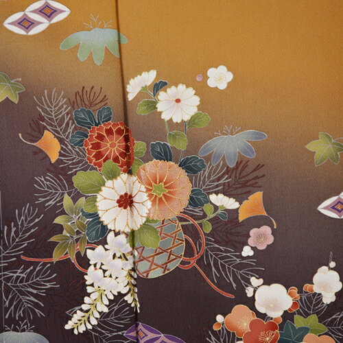 ■0532-39-7660 標準サイズ 身長・・・154cm〜166cm位 洋服サイズ・・・7号〜11号位まで 商品説明 こってりとした黄土色と裾のグラデーションにたおやかな花籠文様がクラシカルでおしゃれな訪問着です。