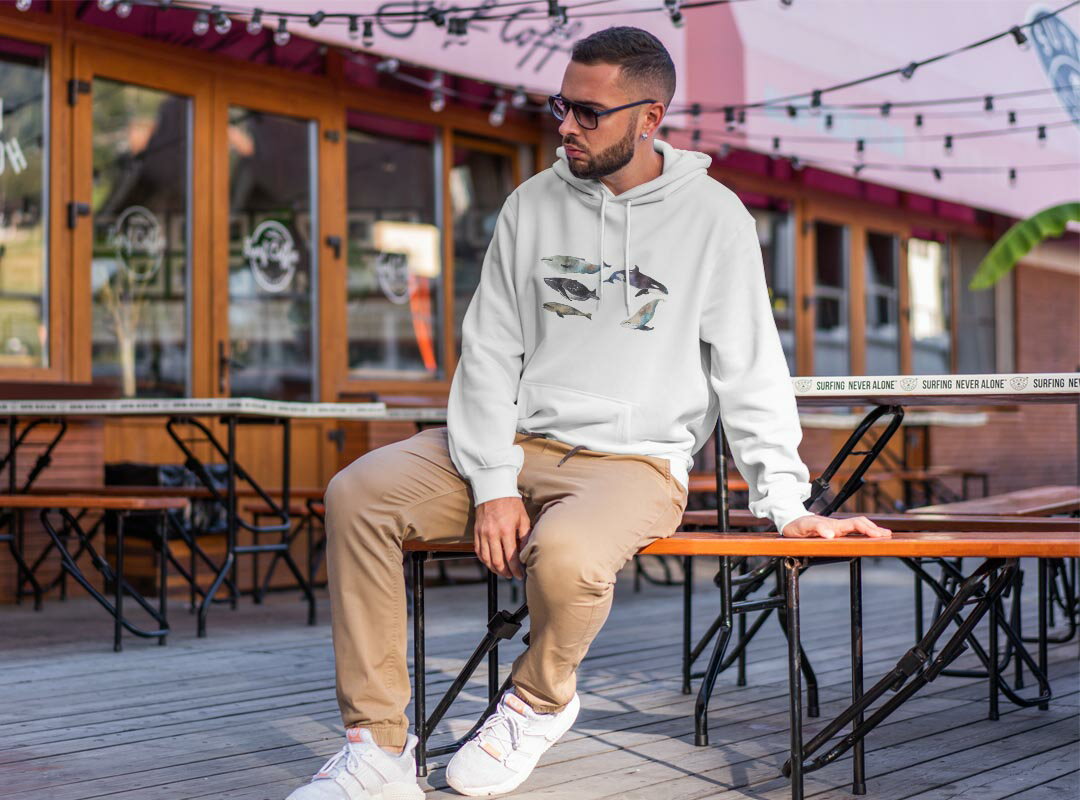 パーカー 男女 メンズ レディース 長袖 ホワイト グレー ブラック デザイン 150 S M L XL 2XL parker hooded sweatshirt フーディ 白 黒 灰色 015835 魚 海 くじら シャチ